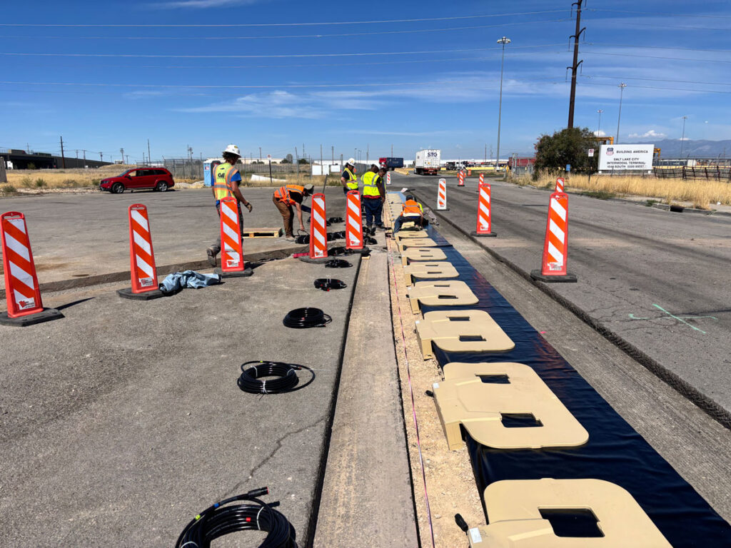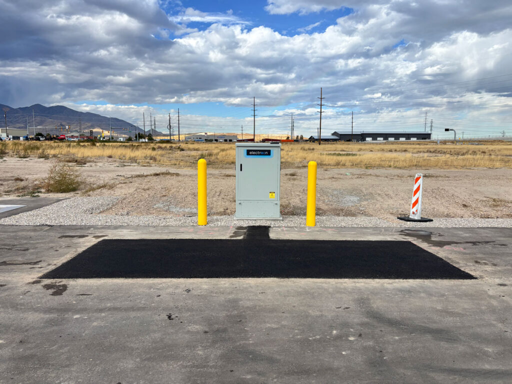 The last Electreon segments were placed in the asphalt last Monday at ASPIRE’s demonstrations at the Utah Inland Port. Additionally, the static charger was successfully installed. With the last of the asphalt installation, both lanes are complete. This week, roadway striping will be finished.